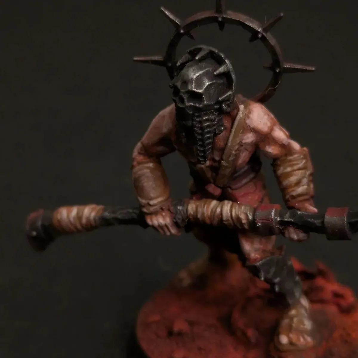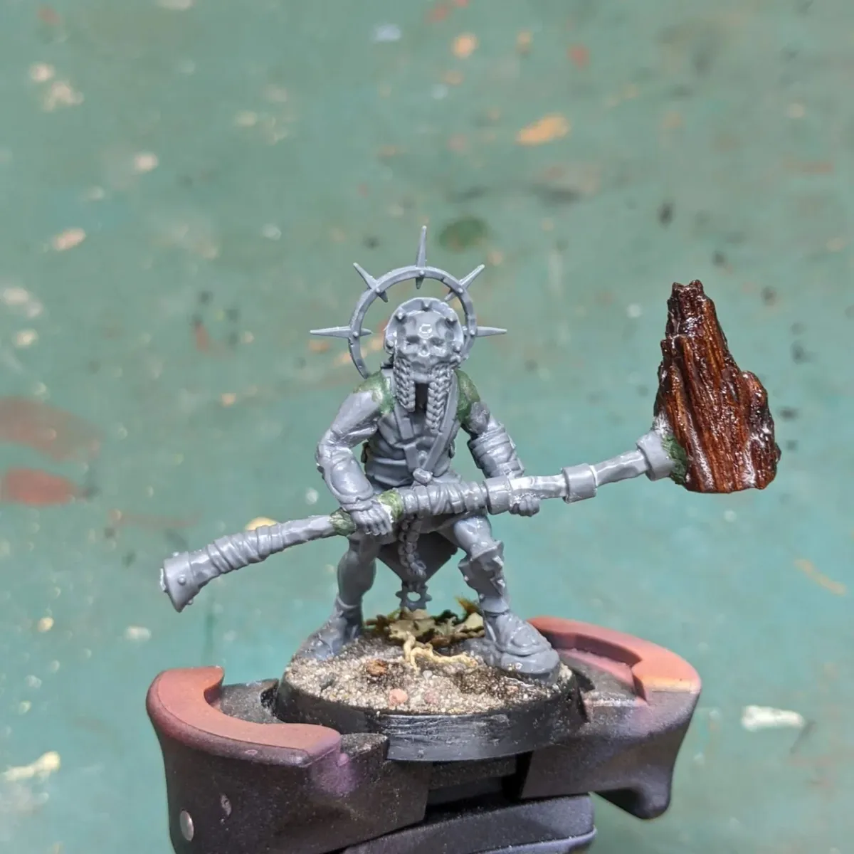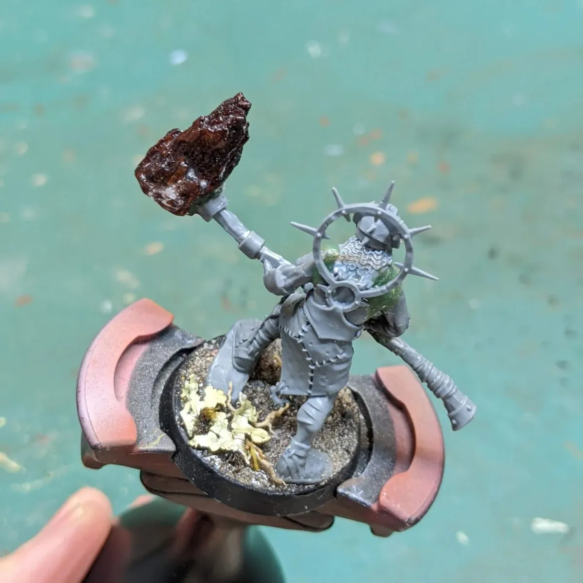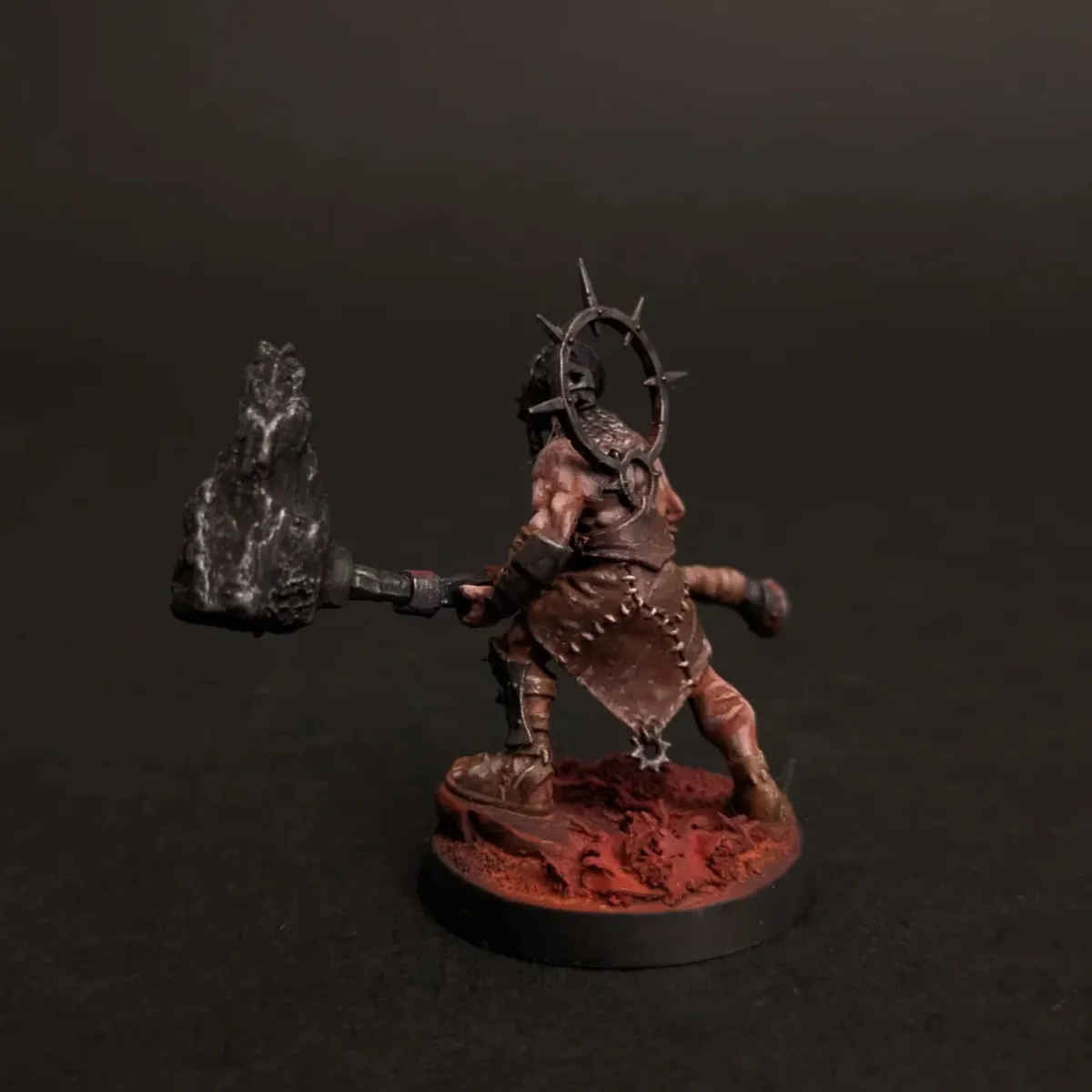 Mini for my character in an Elden Ring inspired one-shot my group played. Just a kitbash of an Unmade Warcry mini with his own special hammer made from a chunk of wood.